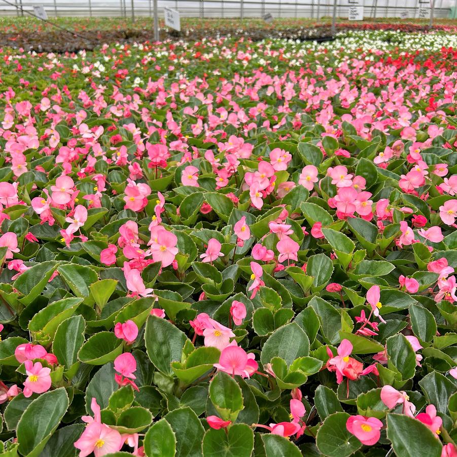 Large 2-3″ flowers are held above the leaves for maximum show and can reach a height of 20 inches. The bronze foliage adds vibrancy and contrast to the striking red or rose colored flowers. Early flowering and superior branching add to the appeal of this tall landscape specimen. Characterized by its upright arching habit, ‘BIG’ begonias make a stately presentation in park settings and large landscape plantings from full sun to shade.